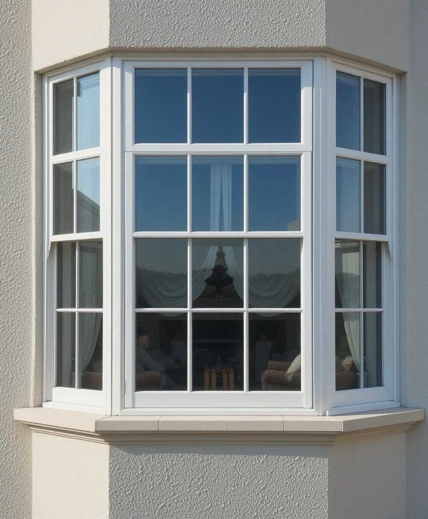 uPVC bay windows are a combination of three or more windows that project outward from the wall, creating a beautiful nook and a panoramic view. Installing a bay window can add space, charm, and increased light to any room. Oriel India crafts bay window setups using sturdy VEKA uPVC profiles that ensure the extended structure remains strong and weatherproof.